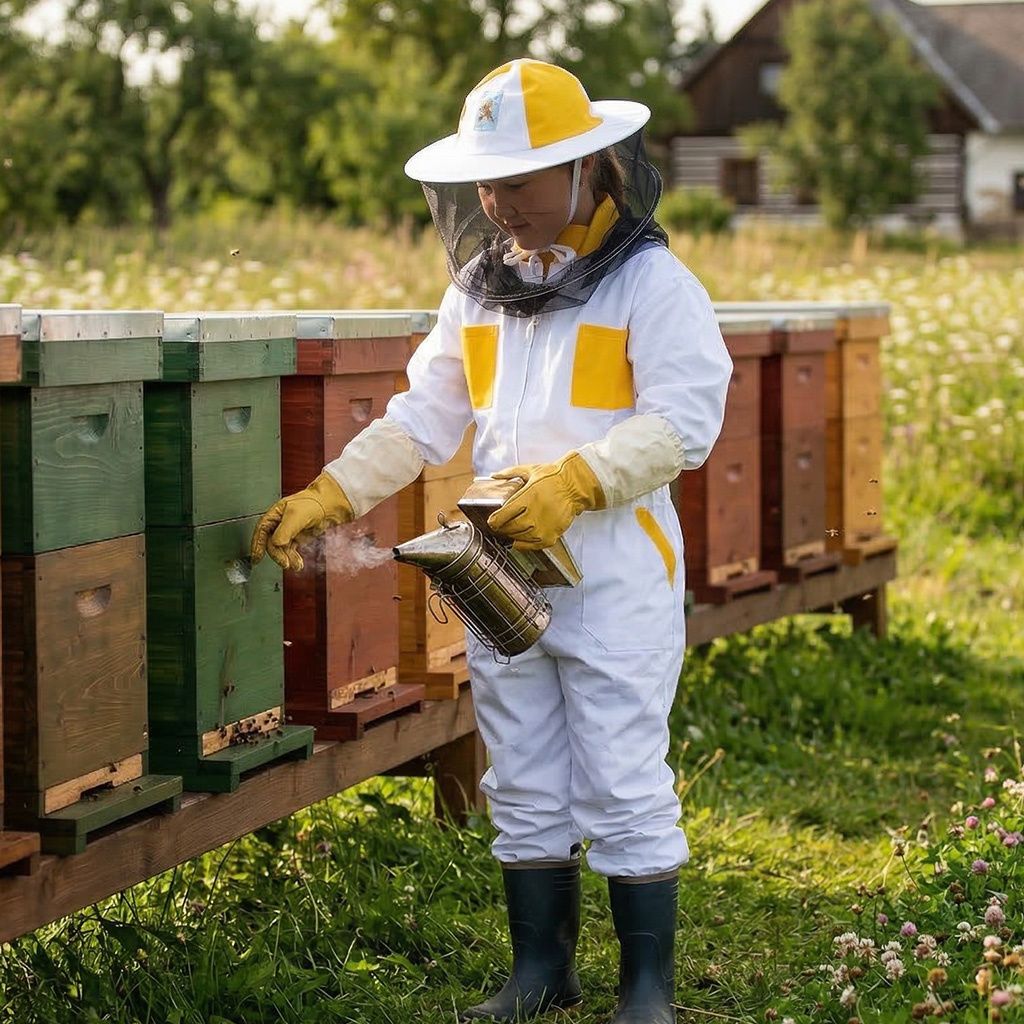 Světlé barvy, které včely nedráždí: Kombinace bílé a žluté není jen estetická volba. Světlé odstíny včely obecně provokují mnohem méně než tmavé barvy. Navíc na světlém povrchu okamžitě uvidíte, pokud si na oděv sedne včela, a můžete ji šetrně setřást dříve, než se dostane k otvorům.