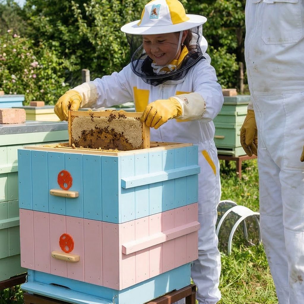 Plánujete vzít děti ke včelám a ukázat jim, jak to v úlu vypadá? S touto dětskou včelařskou kombinézou s kloboukem se nemusíte bát o jejich bezpečí. Oděv zakrývá celé tělo a výrazně snižuje riziko bodnutí při běžných činnostech u včelstva – ať už jde o prohlídku rámků, přikrmování nebo pomoc při medobraní. Kombinéza je dostupná ve velikostech 104 až 164, takže v ní pohodlně oblečete jak předškoláka, tak teenagera.