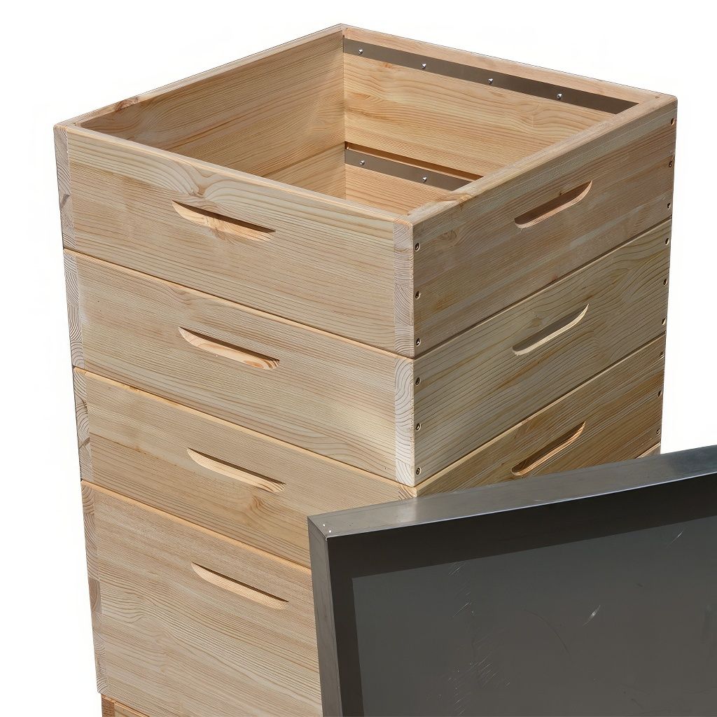 V této všestranné sestavě můžete zvolit i speciální variantu nástavků pro med, která je vybavena důmyslným dřevěným hřebenem. Tento praktický prvek umožňuje flexibilní redukci medníkového nástavku na 10 nebo 11 rámků podle vašich aktuálních potřeb a zkušeností. Celá sestava je navržena pro standardizované rámky o rozměrech 482 x 448 x 285 mm v plodišti a 482 x 448 x 159 mm v medníku, což zajišťuje kompatibilitu s běžně dostupným příslušenstvím.