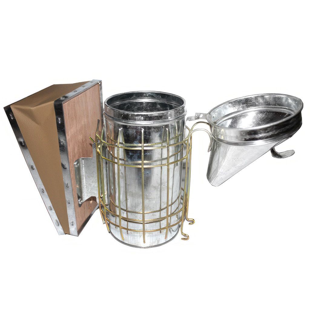 Dýmák německé konstrukce s objemnou topeništní komorou zajišťuje rovnoměrnou produkci studeného kouře o nízké intenzitě, vhodného k uklidnění včelstva před prohlídkou. Pozinkovaná úprava pláště poskytuje základní antikorozní ochranu, pro zachování životnosti je však nezbytné zamezit dlouhodobé expozici vlhkosti. Měchový systém umožňuje plynulou regulaci tahu a dávkování kouře přímo do nástavků i do česna. Integrovaný popelník slouží k bezpečnému zhášení a zachycení žhavých reziduí po ukončení ošetření stanoviště.