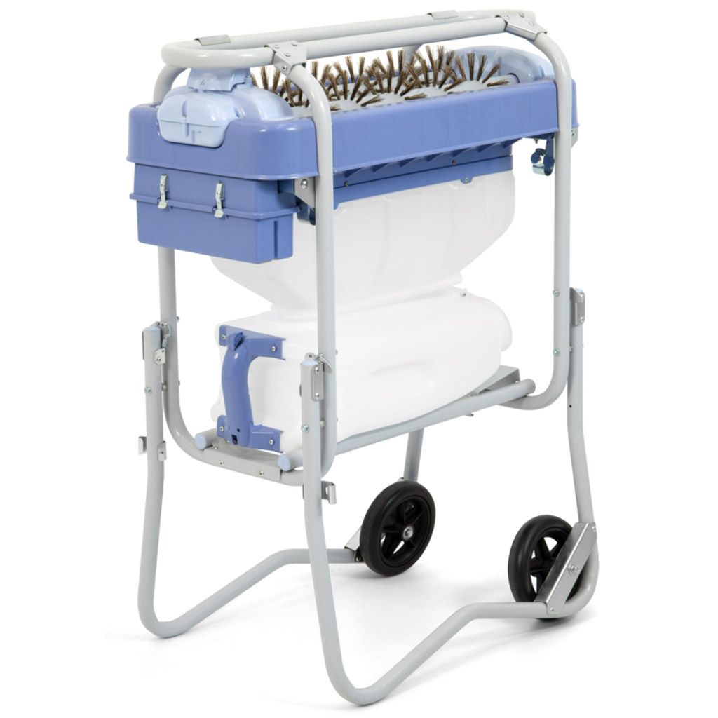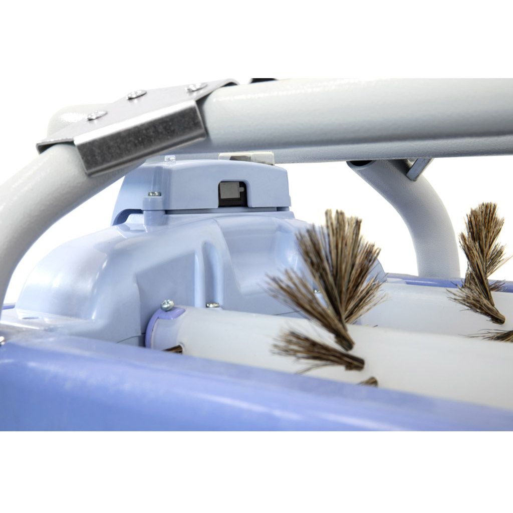 | Výbava | 2× spirálový kartáč, skládací nohy, pojezdová kola, sběrný box |