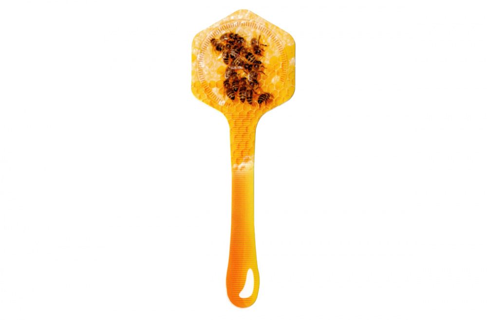 Etikety samolepící na víčko sklenice bez potisku textem, bez typového označení medu. Rozměry cca 54 x 134 mm.