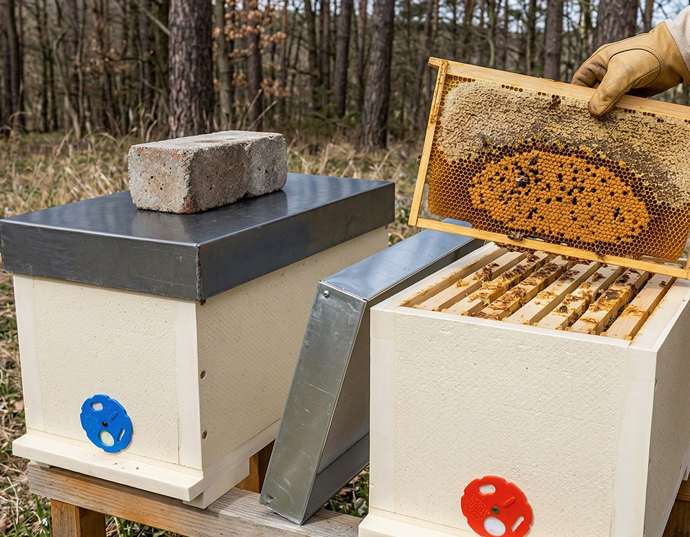 - Dočasné zakladení nahoře: na začátku nevadí, že matka krátce vyběhne do nízkého a část zaklade – důležité je, že včelstvo dostane prostor.