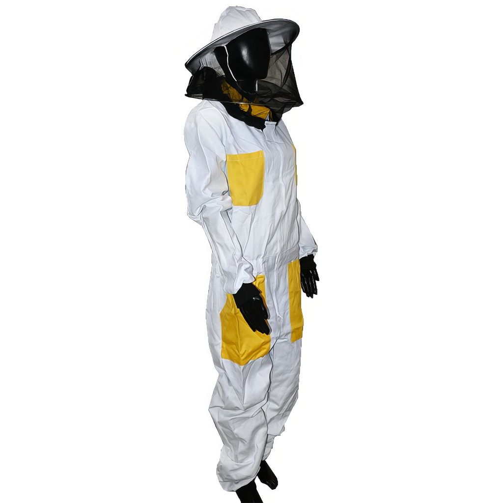 velikost: 48–68, poskytující maximální ochranu pro celou vaši postavu během práce se včelami. Tato profesionální včelařská kombinéza je vyrobena z prvotřídních, pečlivě vybraných materiálů, které efektivně zabraňují včelím bodnutím a zajišťují vaši bezpečnost při každém kontaktu se včelstvem. Kombinéza disponuje prakticky řešenými rukávy, které byly speciálně navrženy tak, aby se daly pohodlně a bezpečně založit do včelařských rukavic, čímž eliminujete riziko, že by vás včely ohrožovaly v oblasti zápěstí a předloktí. Ergonomický střih kombinézy zajišťuje, že skvěle padne téměř každé postavě, a její elegantní bílo-žluté barevné provedení nejen dobře vypadá, ale má i praktický význam. Bílá barva byla zvolena především z důvodu, že se v přírodním prostředí příliš nevyskytuje, což znamená, že včely na ni zpravidla neútočí, a pokud na kombinézu přece jen usednou, jsou na světlém podkladu velmi dobře viditelné, což vám umožní rychle reagovat.