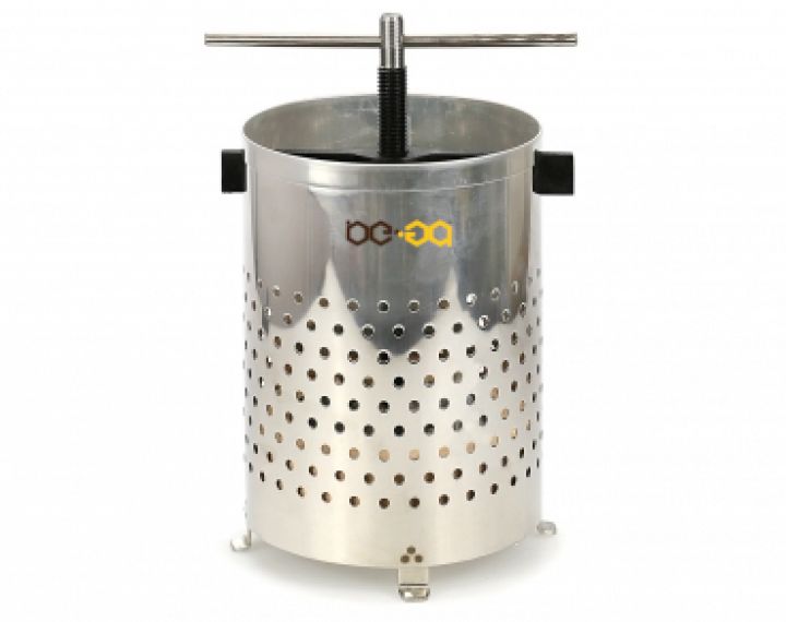 Lis na vosk nerezový na klasické lisování za studena. Určeno pro lisování víček. Vyrobeno z nerezového Děrovaného plech a podní čísti koše bez otvorů. Přítlačný talíř je vyroben z 3 mm tlustého tvrdého dřeva.