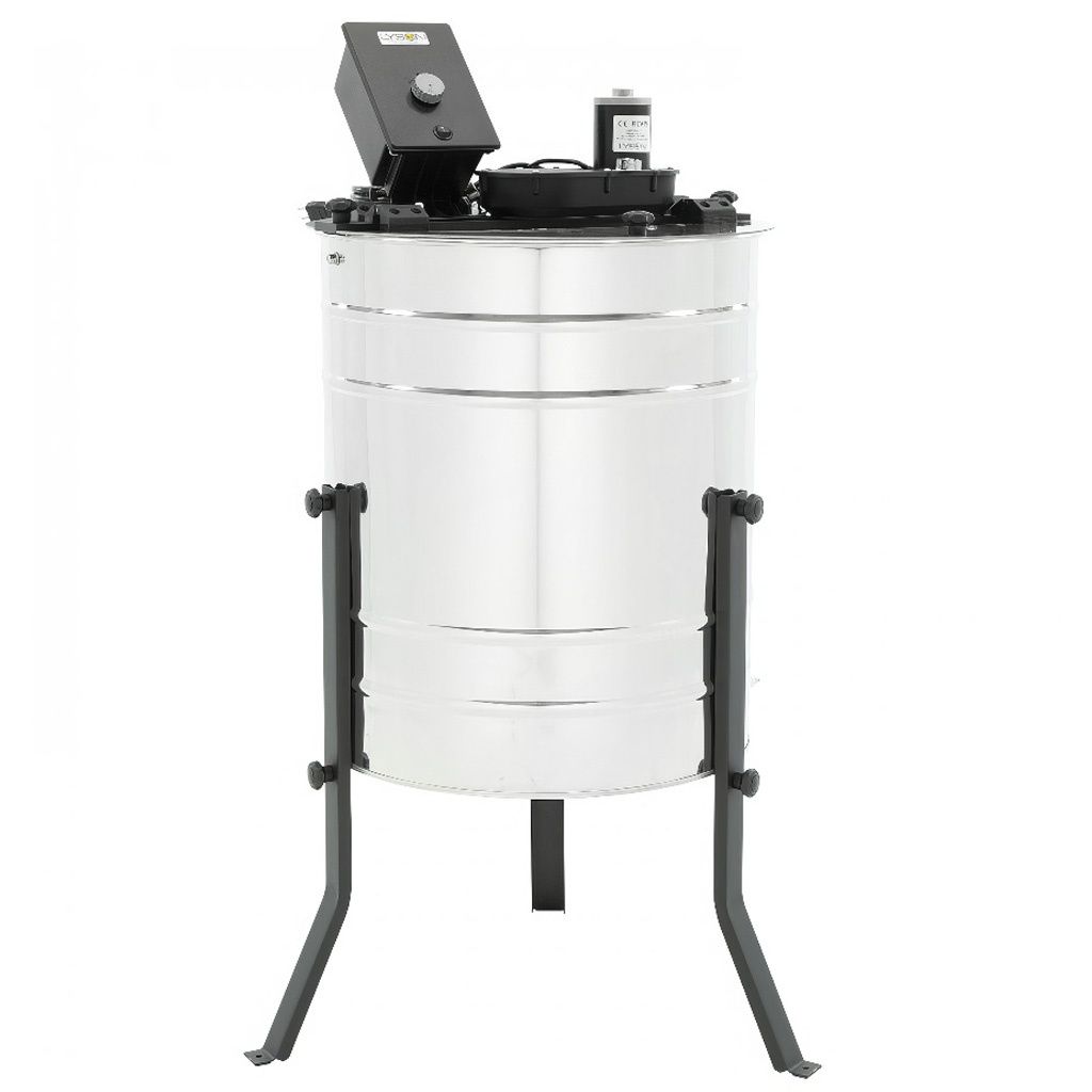 Buben o průměru 50 cm pojme rámky o maximálních rozměrech 44,8 × 26 cm, což z tohoto medometu činí opravdu všestranný nástroj. Bez problémů v něm vytočíte rámky 39×17, 39×24, různé velikosti Langstroth (od 137 až po 232), Optimal 42×17 a řadu dalších. Pokud provozujete více typů úlů nebo uvažujete o změně rámkové míry, nemusíte se obávat – tento medomet vám poslouží i nadále.