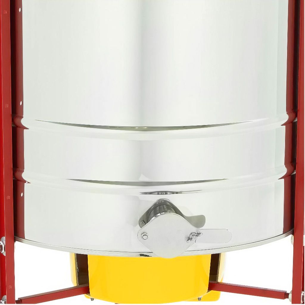 Díky kvalitním ložiskům je převod otáčivé síly z motoru plynulý a bezproblémový. Práce s medometem je snadná a příjemná, ať už zvolíte ruční, nebo elektrický pohon. Ruční pohon je navíc vybaven brzdou pro pohodlné zastavení rotace koše. Kovový podstavec zajišťuje stabilitu a dostatečnou výšku kohoutu od země (cca 36 cm), takže pod medomet pohodlně umístíte nádobu na med.