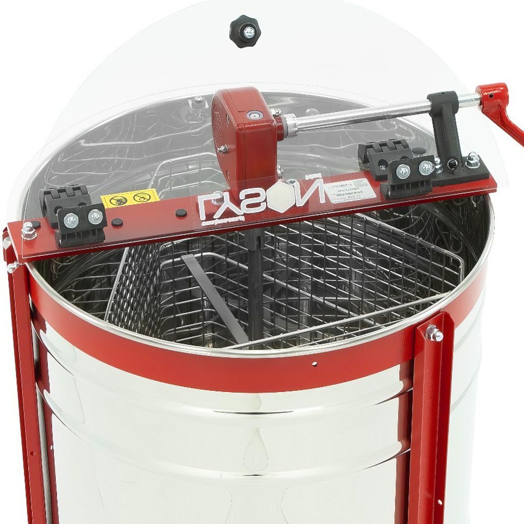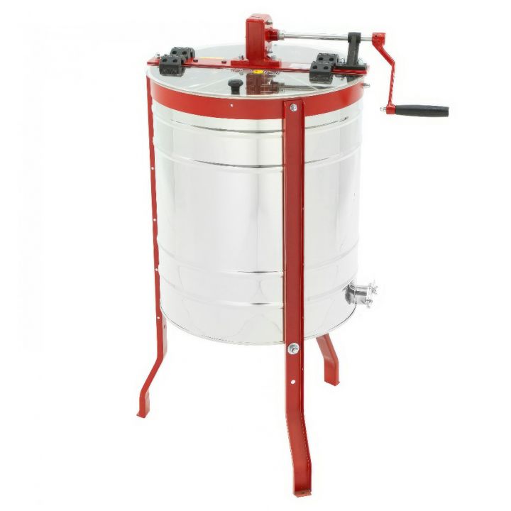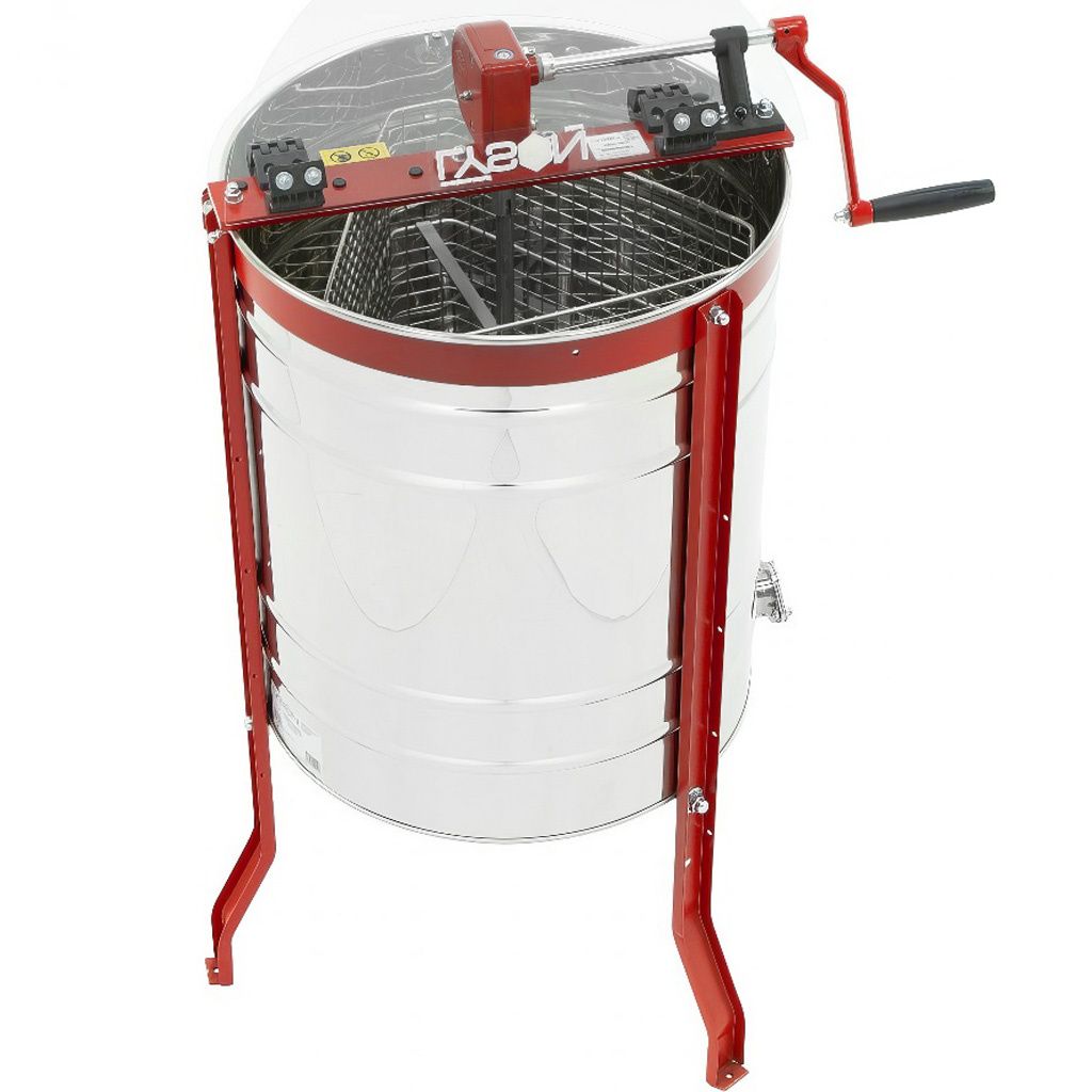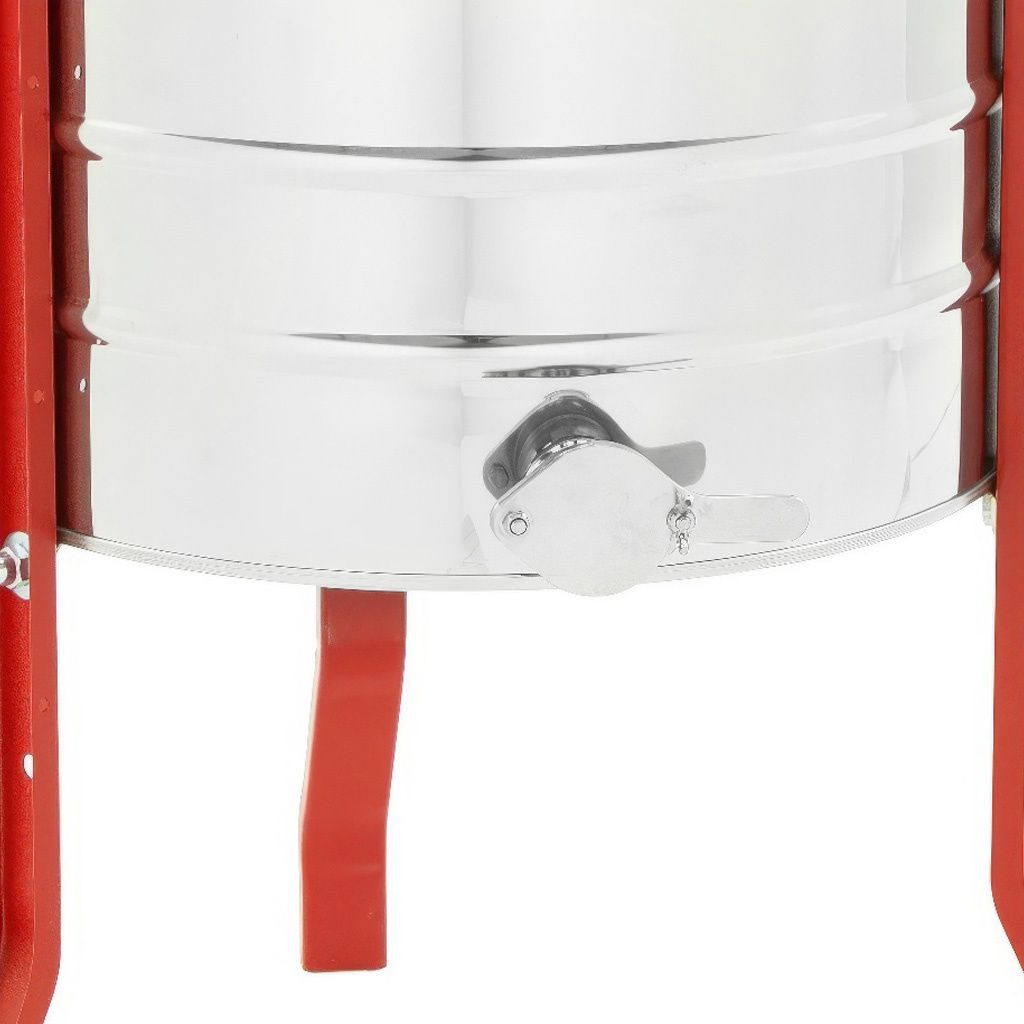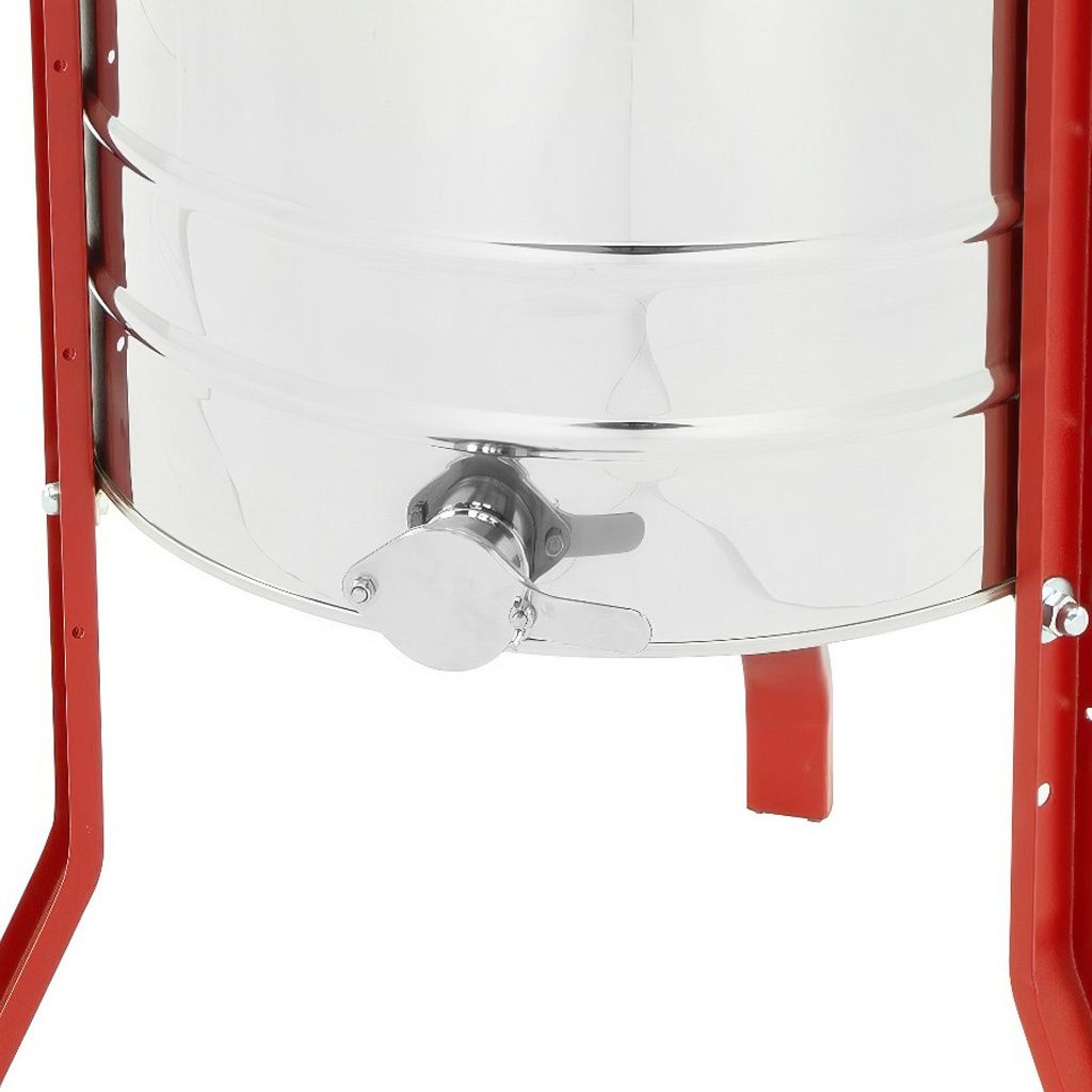 Medomet je vybaven manuálním pohonem na kliku doplněným o brzdu, která umožňuje plynulé zastavení koše. Práce s medometem je snadná a jde dobře od ruky, takže vytáčení medu zvládnete pohodlně i bez elektrického pohonu. Výška kohoutu od země přibližně 36 cm zajišťuje dostatečný prostor pro pohodlné umístění nádoby na stáčení medu.