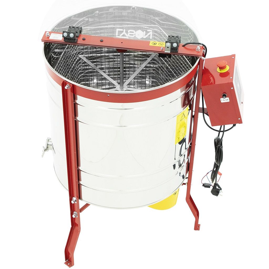 Medomet je kompletně vyroben z nerezové oceli v místech, kde dochází ke kontaktu s medem. Elektromotor o výkonu 250 W je umístěn ve spodní části přístroje, čímž zajišťuje stabilní a tichý chod. Díky kvalitním ložiskům je přenos otáčivé síly z motoru na koš bezproblémový a práce s medometem jde snadno od ruky. Elektronická plynulá regulace otáček vám umožní přizpůsobit rychlost vytáčení konkrétním podmínkám a typu plástů.