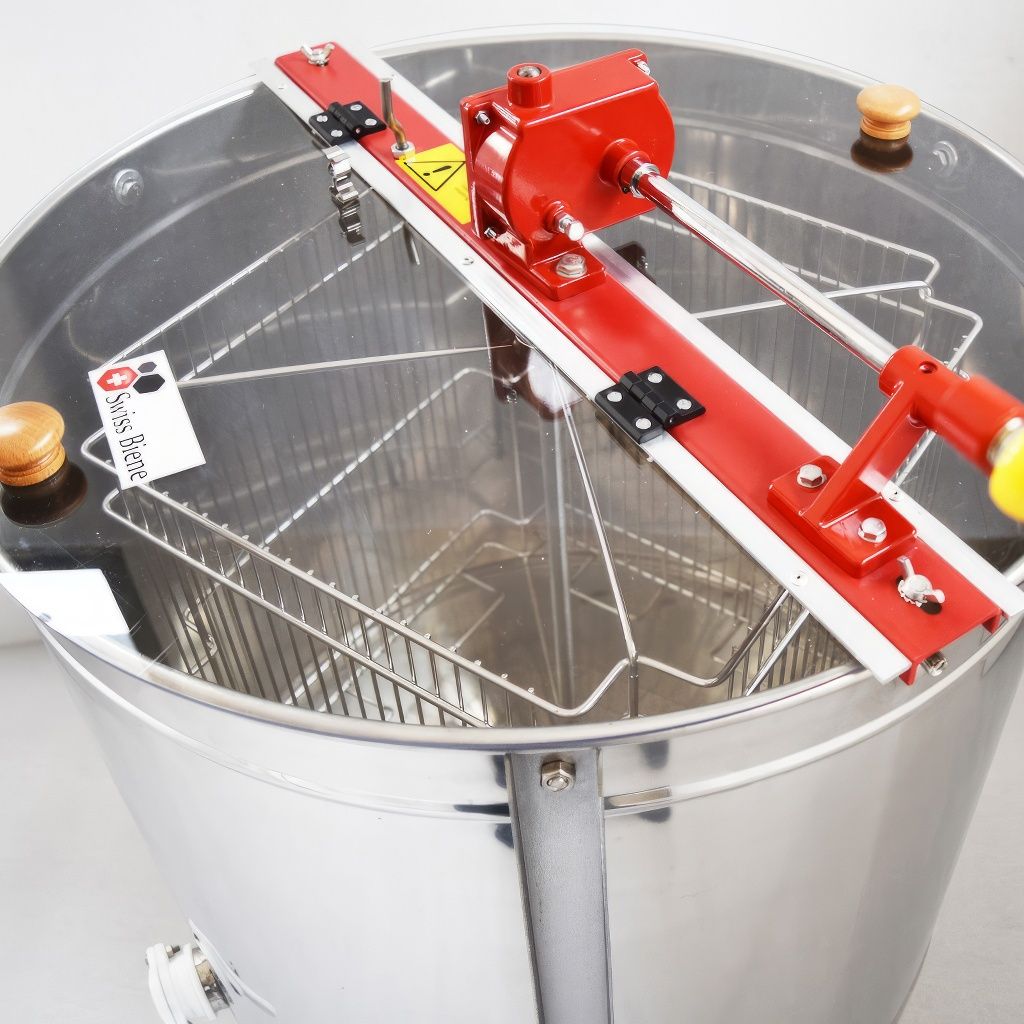 Medomet Swiss Biene sdílí řadu konstrukčních prvků se zmíněnými značkami, včetně kompatibilních klik. To znamená snadnou dostupnost náhradních dílů a příslušenství. Buben o průměru 54 cm poskytuje dostatek prostoru pro efektivní vytáčení medu ze čtyř rámků současně, čímž šetříte čas i energii při zpracování úrody.