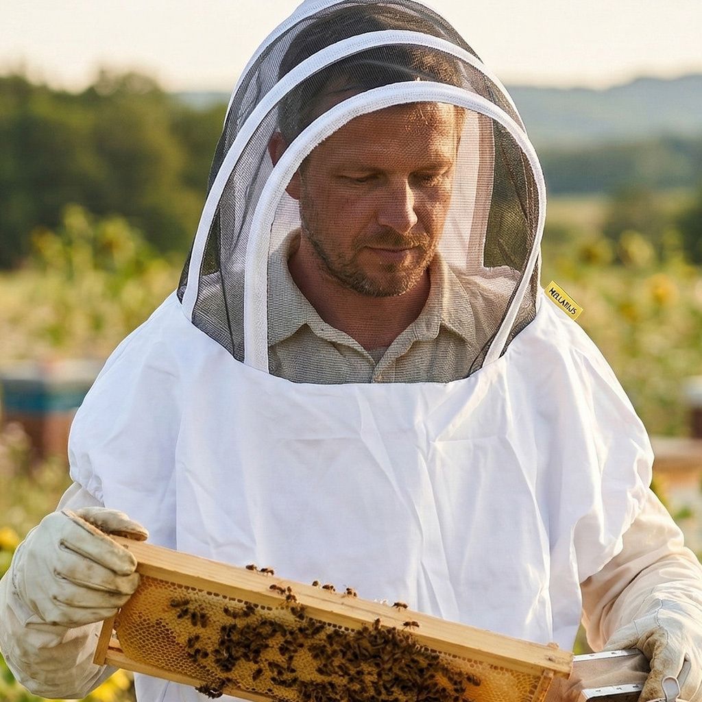 Včelařská ochranná kukla Mellarius s bavlněným plátnem je oblíbenou a cenově dostupnou volbou pro každého včelaře. Díky pevné a odolné síťce černé barvy poskytuje výborný výhled při práci u úlů, zatímco široký kšilt zajišťuje bezpečný odstup všech částí hlavy od síťky. Při manipulaci se včelstvy se tak můžete cítit pohodlně a chráněně.
