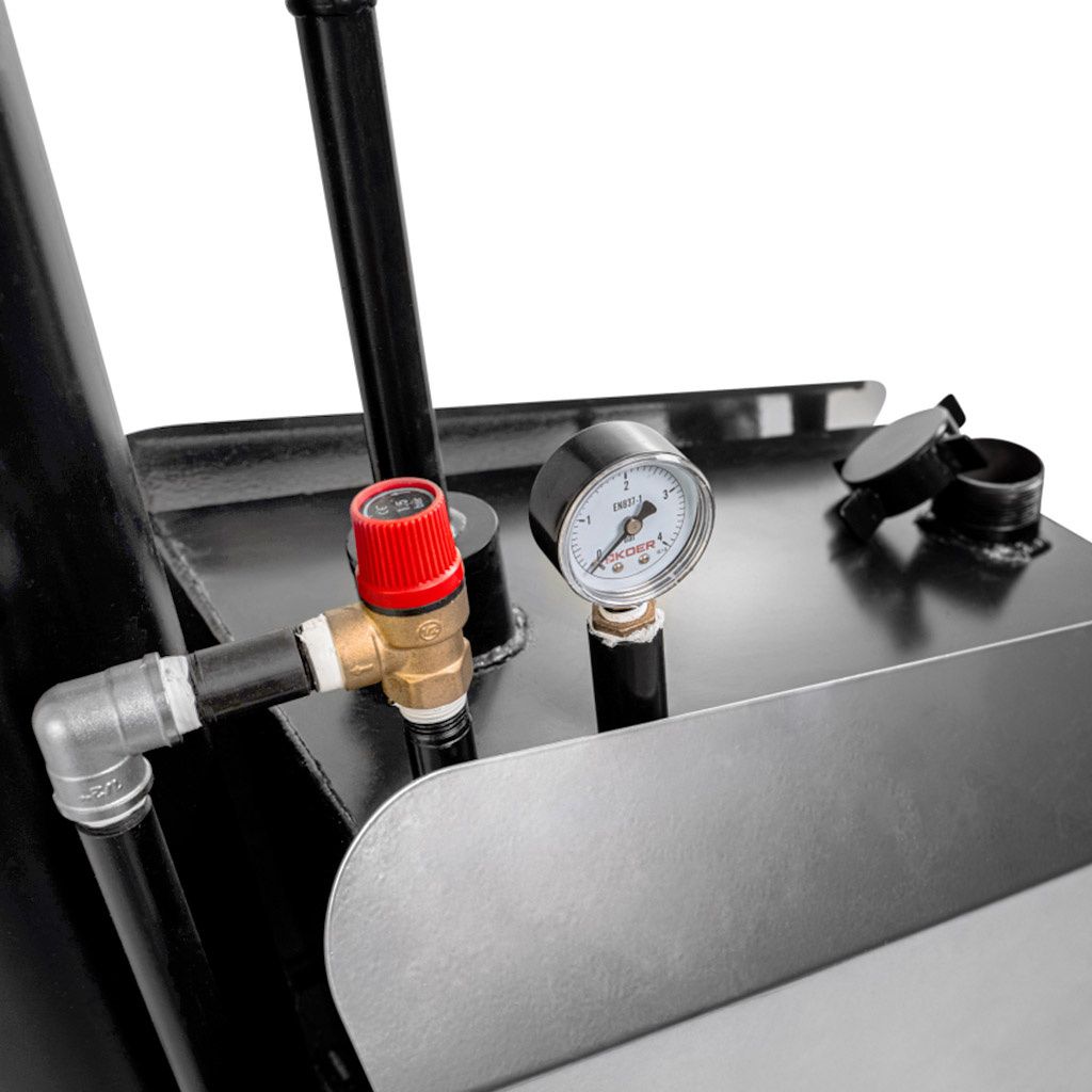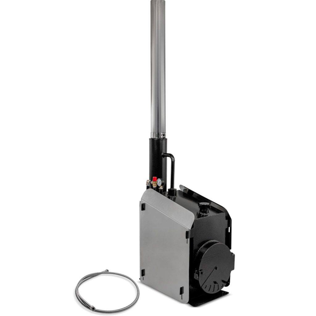 Generátor je zhotoven z pevné oceli a je konstruovaný pro topení kusovým dřevem až do délky 50 cm. Uzavřená spalovací komora spolu se systémem tvorby páry dobře drží teplo a využívá energii účinně. Na jedno naplnění vodou zvládne zařízení pracovat přibližně 2–3 hodiny, takže se můžete věnovat tavení souší, víček i odřezků bez častého doplňování.