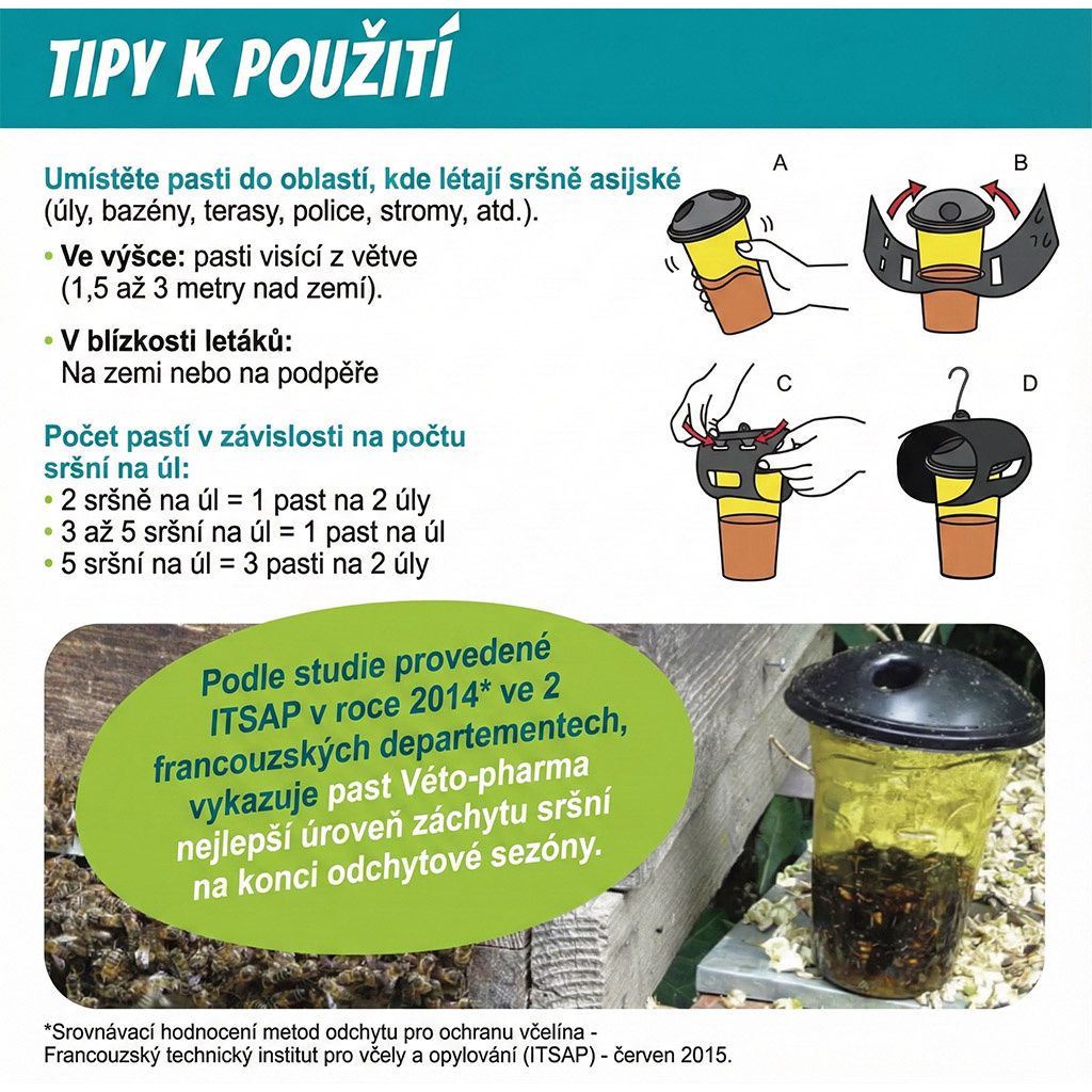 VespaCatch je účinné, přirozené a bezpečné řešení pro odchyt invazivní sršně asijské (Vespa velutina). Past vyvinutá laboratoří Véto-Pharma pomáhá chránit včelstva, zahrady i vinice a díky promyšlené konstrukci má vysokou selektivitu (omezuje dopad na ostatní hmyz).