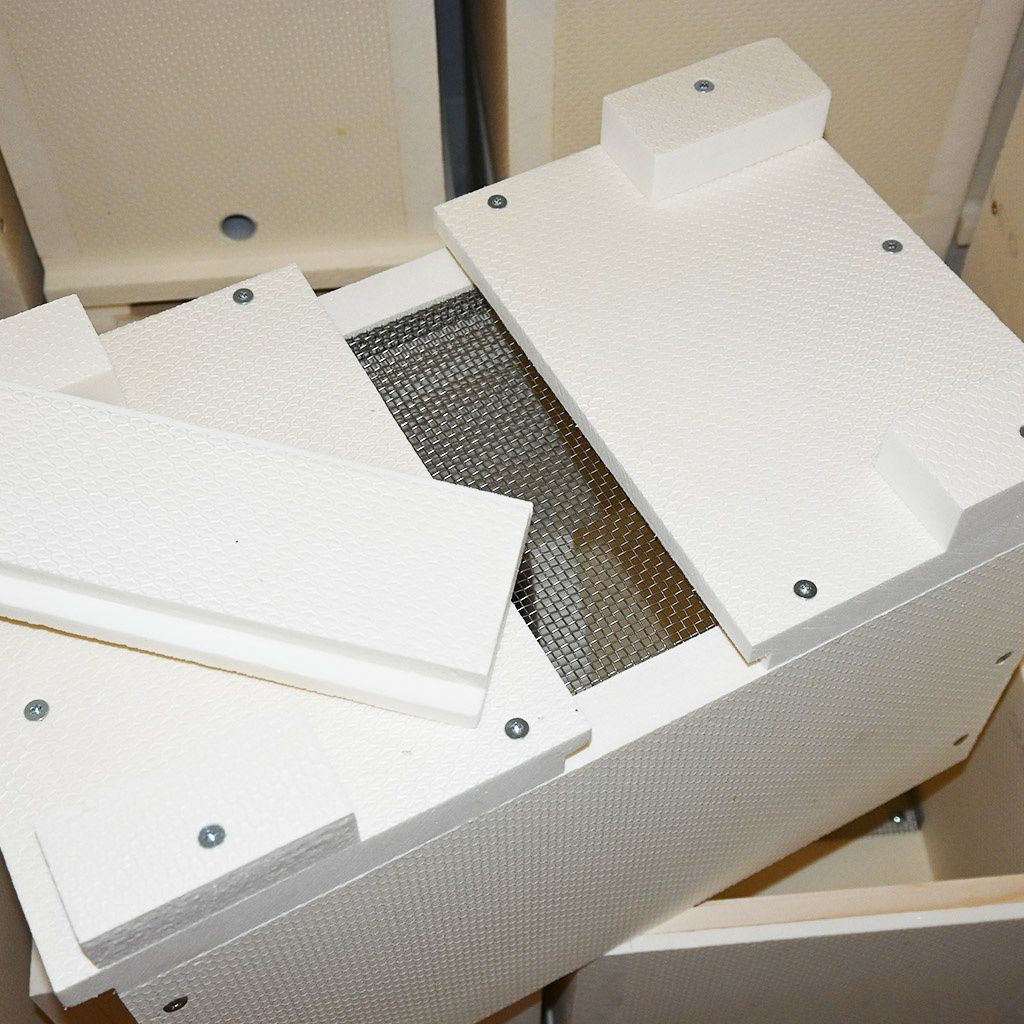 Transport a prodej včelstev: Nízká hmotnost polystyrenového plemenáče usnadňuje manipulaci a přepravu. Regulovatelné větrání ve dně účinně snižuje riziko zapaření včel během převozu, takže včelstva dorazí na místo v dobré kondici.