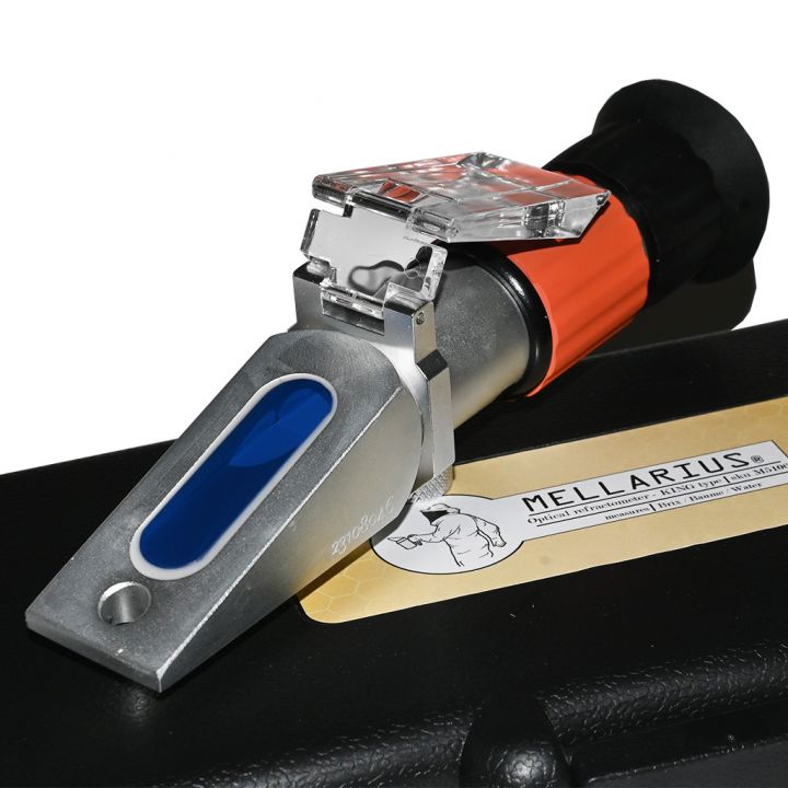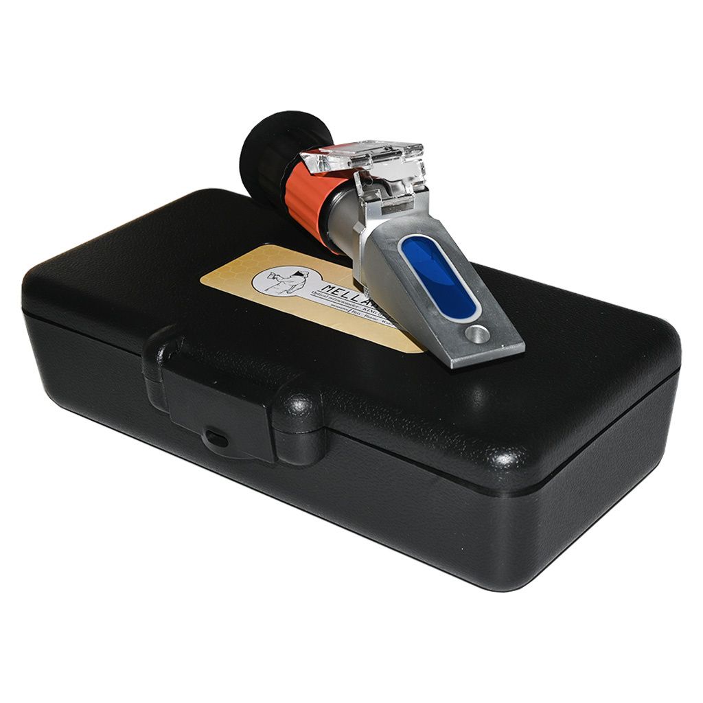 Refraktometr je vysoce přesný nástroj vhodný k přesnému určení obsahu vody v medu. Spolehlivě měří cukernatost a poskytuje včelařům důležité informace o kvalitě jejich produktu. Model KING představuje významné vylepšení oproti běžnému modelu Catania, a to především díky kvalitnějšímu zakrývacímu sklíčku vyrobenému z materiálu PMMA, které vyniká výrazně lepší odolností jak vůči mechanickému opotřebení, tak i chemickému poškození při častém používání. Další podstatné vylepšení se týká kalibračního šroubu, jenž byl strategicky umístěn na spodní část přístroje, čímž se efektivně předchází jakékoliv nechtěné manipulaci a zároveň se výrazně snižuje riziko zatečení vody během procesu čištění. Refraktometr jako takový představuje sofistikovaný optický přístroj, který pracuje na důmyslném principu lomu světla. Je speciálně zkonstruovaný k rychlému a přesnému zjištění koncentrace různých vodních roztoků. Díky tomuto přístroji můžete jednoduše a s vysokou přesností zjistit přesný obsah vody ve vašem medu. Velkou výhodou tohoto zařízení je, že je vybaveno automatickou teplotní kompenzací, což znamená, že nemusíte refraktometr při mírných změnách okolní teploty neustále seřizovat, což výrazně usnadňuje jeho každodenní používání.