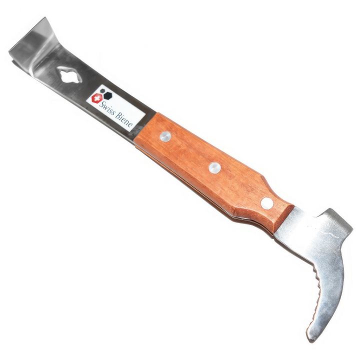 Pokud hledáte rozpěrák, se kterým budete spokojeni roky, tohle je sázka na jistotu. Nerezová ocel znamená nulovou korozi – nástroj můžete bez obav čistit, dezinfikovat a nevznikne na něm ani stopa rzi. Dřevěná rukojeť příjemně sedí v dlani a netlačí ani při delších prohlídkách, kdy postupně procházíte více úlů za sebou. Délka 26 cm vám dává dostatečnou páku, takže i silně zapropolisované nástavky oddělíte bez zbytečné námahy. Jedná se o profesionální nářadí od značky SWISS BIENE, které oceníte zejména v hlavní sezóně, kdy se prohlídky provádějí často a rychlost práce u včelstev je klíčová. Rozpěrák poslouží jak k oddělování nástavků a rámků, tak k odstraňování přebytečného díla či škrabání propolisu z úlových ploch.