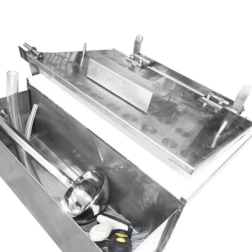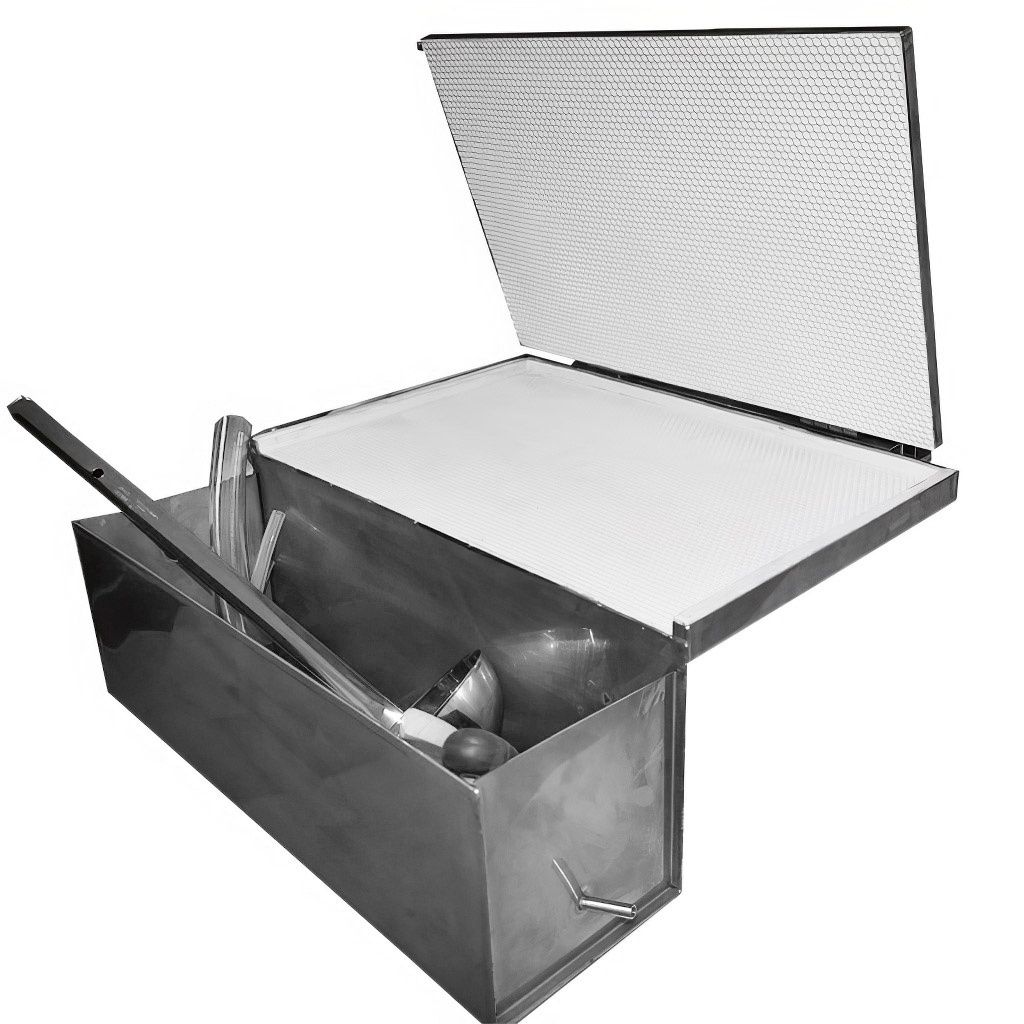 Lis je dodáván jako kompletní sada, takže můžete s výrobou mezistěn začít ihned po rozbalení. V balení naleznete nerezovou špachtli pro snadné odstraňování hotových mezistěn, naběračku na roztavený vosk, štětec pro údržbu formy a několik hadic potřebných pro zapojení vodního chlazení. Vše, co potřebujete, máte po ruce.
