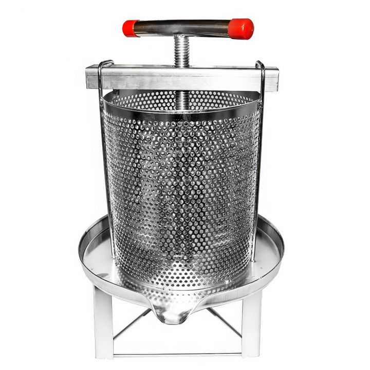 Každý včelař ví, že práce s včelstvy zdaleka nekončí u vytáčení medu. Zpracování odvíčkovanců, voskových zbytků či voští vyžaduje spolehlivý nástroj, který dokáže šetrně a důkladně vylisovat každou cennou kapku. Tento ruční šroubový lis z nerezové oceli je přesně takový pomocník – jednoduchý na obsluhu, odolný a hygienicky nezávadný. Ať už potřebujete získat zbytkový med z víček, vytěžit vosk, nebo si mimo včelařskou sezónu připravit domácí mošt, s tímto lisem to zvládnete pohodlně a efektivně.