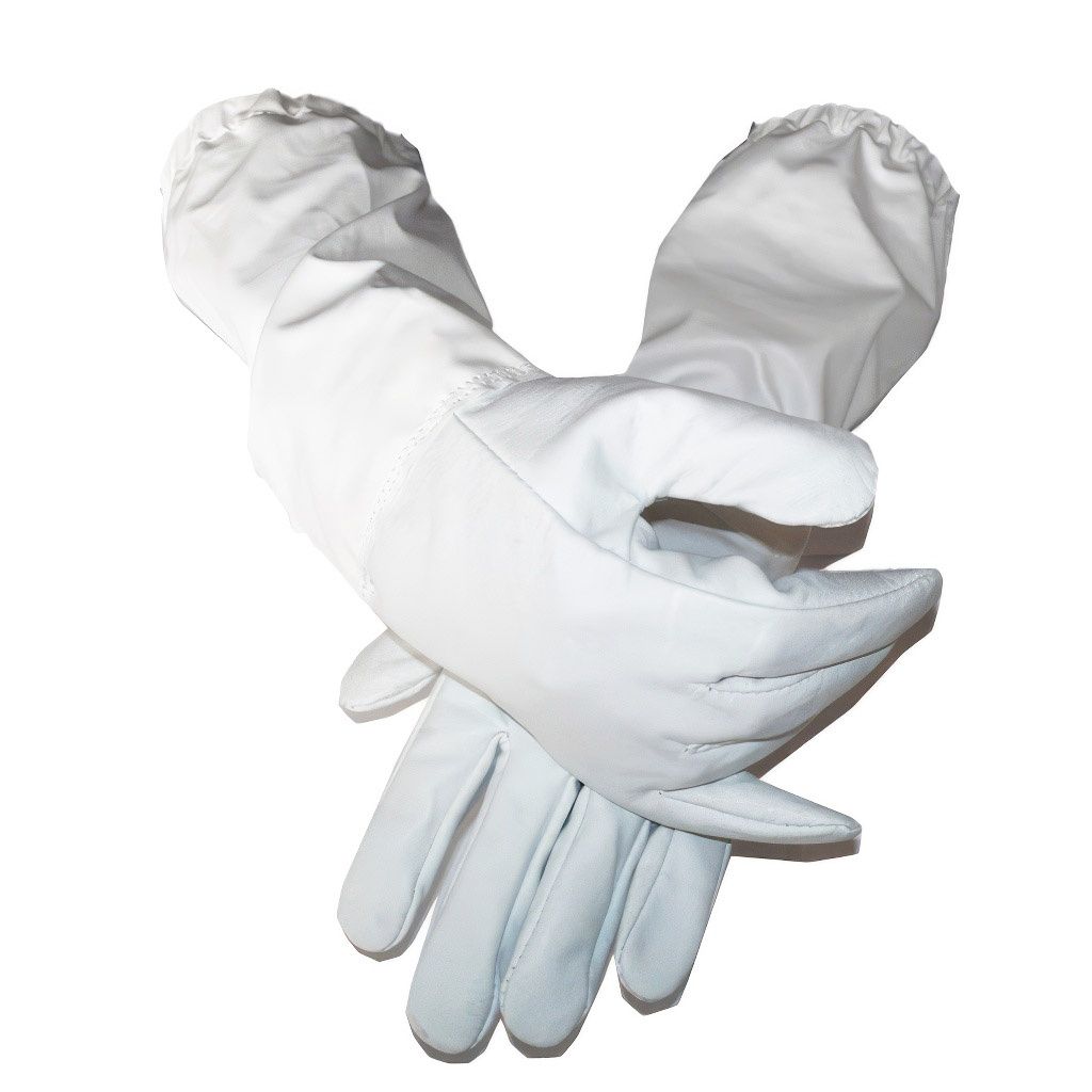 Včelařské rukavice z kůže (vepřovicová lícovka) o velikosti 6-12 jsou naprosto nezbytnou a klíčovou součástí ochranného vybavení každého zkušeného i začínajícího včelaře. Tyto profesionální včelařské ochranné rukavice nabízíme v širokém rozmezí velikostí 6-12, aby vyhovovaly všem typům rukou. Rukavice Vás spolehlivě a účinně ochrání před bolestivými a nepříjemnými žihadly a jsou vyrobeny z mimořádně měkkého a přitom odolného materiálu, konkrétně z kvalitní vepřovicové lícovky, která zajišťuje optimální kombinaci komfortu a ochrany. Naše včelařské rukavice jsou navrženy tak, aby v žádném případě neomezovaly včelaře při vykonávání jakékoliv práce kolem úlů, dokonale jej chrání a díky promyšlenému designu efektivně zabraňují vniknutí i těch nejmenších včel do rukávů. Poskytují komplexní ochranu zápěstí, které je často vystaveno riziku žihadel. Rukavice jsou na koncích elegantně zakončeny bílou kvalitní umělotinou, která vytváří účinnou bariéru proti vniknutí včel do rukávů vašeho oděvu. Kožené rukavice disponují praktickým zakončením pruženkou, která zajišťuje pohodlné a bezpečné nošení po celou dobu práce se včelstvy. Vyberte si prosím pod obrázky přesně tu velikost, která odpovídá vašim potřebám. Uvedené velikosti 6 - 12 včelařských kožených rukavic udávají v cm přesnou šířku hřbetu ruky v oblasti mezi ukazováčkem a malíčkem.Profesionální včelařské rukavice slouží pro výrazně rychlejší, bezpečnější a mnohem snadnější práci se včelami v jakýchkoliv podmínkách. Naše včelařské rukavice nabízí vynikající stupeň ochrany a zároveň maximální praktičnost při každodenní manipulaci s různými včelařskými nástroji a vybavením.