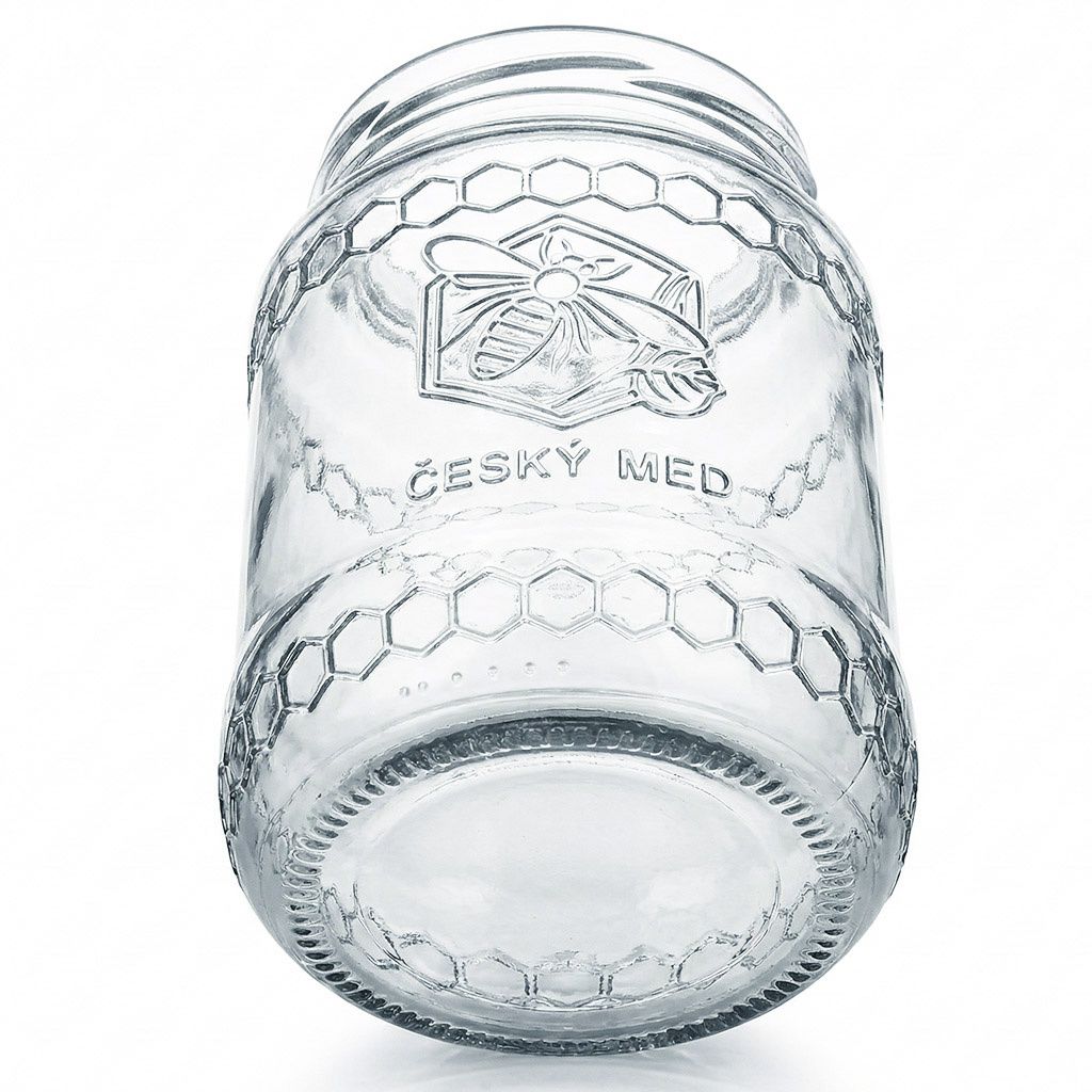 Sklenice na med 770 ml MED - 8,2 Kč/ks - celá paleta 1456 kusů. Pěkná nová sklenice na med s elegantním reliéfem včely a zároveň esteticky provedeným reliéfním nápisem ČESKÝ MED. Tyto kvalitní sklenice na med s nápisem Český med určitě neudělají vašemu medu ostudu a naopak podtrhnou jeho hodnotu a původ. Sklenice je pěkně baňatá, má příjemný tvar do ruky a nálepka s údaji o včelaři a medu se na ni nechá pohodlně nalepit, aniž by se kroutila nebo odlepovala.