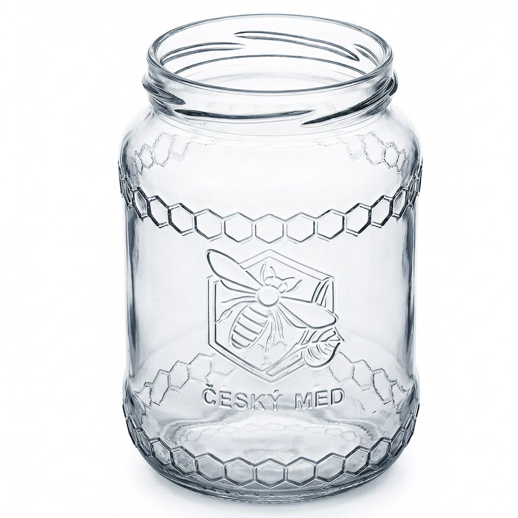 Sklenice na med 770 ml MED - 8,2 Kč/ks - celá paleta 1456 kusů. Pěkná nová sklenice na med s elegantním reliéfem včely a zároveň esteticky provedeným reliéfním nápisem ČESKÝ MED. Tyto kvalitní sklenice na med s nápisem Český med určitě neudělají vašemu medu ostudu a naopak podtrhnou jeho hodnotu a původ. Sklenice je pěkně baňatá, má příjemný tvar do ruky a nálepka s údaji o včelaři a medu se na ni nechá pohodlně nalepit, aniž by se kroutila nebo odlepovala.