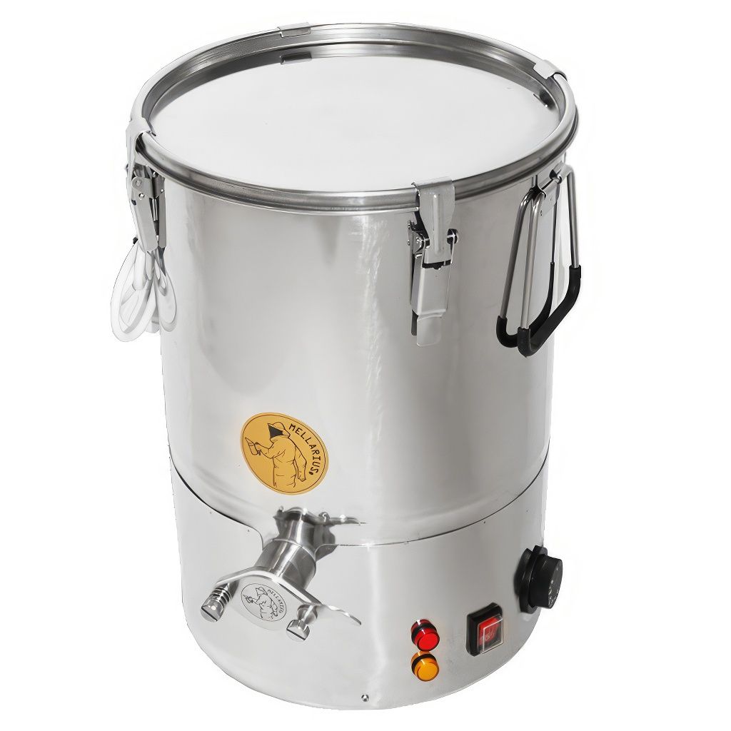 Nádoby na med Mellarius přicházejí v několika propracovaných variantách, přičemž tento konkrétní model vyniká svou integrovanou topnou spirálou, dokonale vyspádovaným dnem pro snadné vyprazdňování, precizně těsnícím víkem a profesionálně navařeným nerezovým kohoutem zajišťujícím maximální pevnost a odolnost. Tyto prémiové nádoby jsou pečlivě vyráběny z vysoce kvalitní nerezové oceli certifikované pro potravinářské účely, která disponuje optimální tloušťkou (0,8 až 1 mm), což efektivně zabraňuje nežádoucím deformacím či promáčklinám při běžném používání. Všechny komponenty nádob jsou precizně spojeny pomocí moderní technologie plazmového svařování, která zajišťuje dokonalou pevnost a trvanlivost. Při navrhování a výrobě těchto nádob je kladen mimořádný důraz na vytvoření hladkých, bezešvých povrchů, které umožňují snadné a důkladné čištění – proto jsou nádoby zhotoveny výhradně z pečlivě leštěných nerezových plechů nejvyšší jakosti. Pro maximální komfort při manipulaci jsou všechny naše nádoby standardně vybaveny ergonomicky tvarovanými nerezovými madly, která umožňují bezpečné a pohodlné přenášení i při plném zatížení.