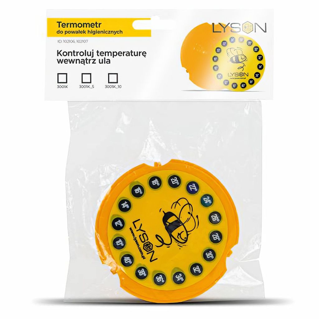 Každý zkušený včelař dobře ví, že správná a stabilní teplota uvnitř úlu představuje klíčovou záruku pro vychování silného, vitálního a zdravého včelstva. Náš kulatý teploměr vyrobený z tekutých krystalů, který se jednoduše instaluje do strůpku úlu, zaručuje mimořádně účinné a přesné měření za velmi nízké pořizovací i provozní náklady. Při kontrole včelstva stačí pouze zvednout stříšku úlu, letmo se podívat na přehledný teploměr a okamžitě můžete dojít ke správným závěrům ohledně stavu vašeho včelstva. Podle naměřené teploty lze totiž velmi spolehlivě zjistit, jaké procesy se právě odehrávají uvnitř úlu.