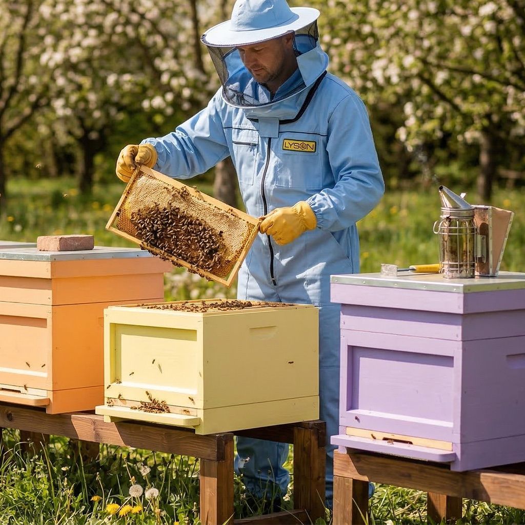 Modrá včelařská kombinéza z kolekce Color Line je navržená pro pohodlnou a bezpečnou práci u včelstev – ať už obsluhujete pár úlů na zahradě, nebo trávíte na včelnici celé dny. Světlý, chladnější odstín působí nenápadněji než tmavé barvy, takže při manipulaci v úle může přispět ke klidnějšímu průběhu práce. Materiálová směs s gramáží 185 g/m² je lehká a prodyšná, dobře odvádí teplo a pomáhá udržet komfort i během letních prohlídek.