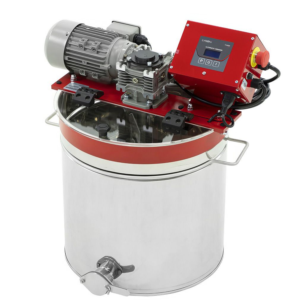 Zařízení k pastování medu o objemu 50 l. Toto profesionální pastovací zařízení je vybaveno výkonným míchadlem s pokročilým časovým spínačem, díky čemuž automaticky pastuje med zcela samostatně podle předem nastavených časových intervalů. Jedná se o ideální řešení pro včelaře, kteří chtějí dosáhnout dokonalé konzistence pastovaného medu bez neustálé kontroly procesu.